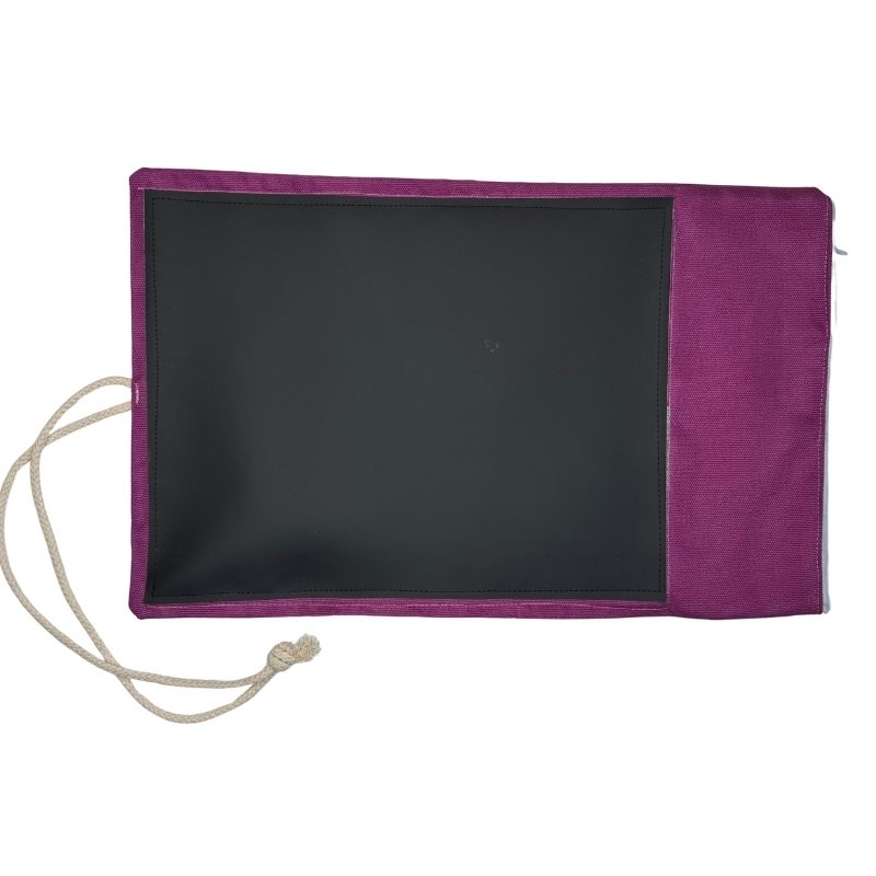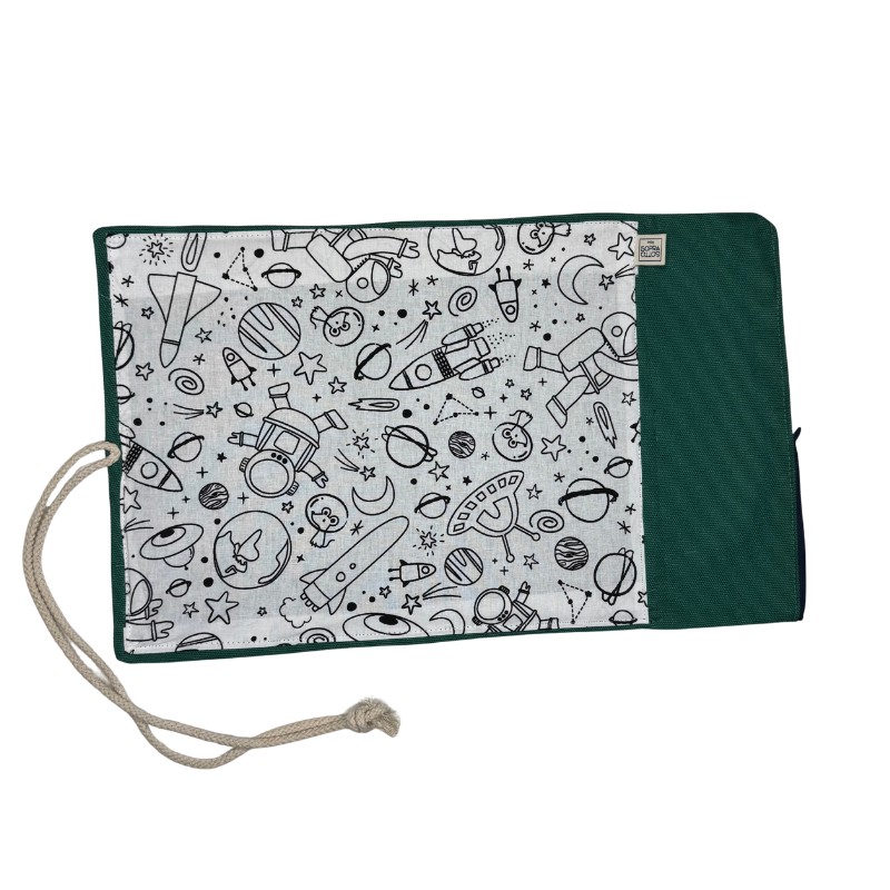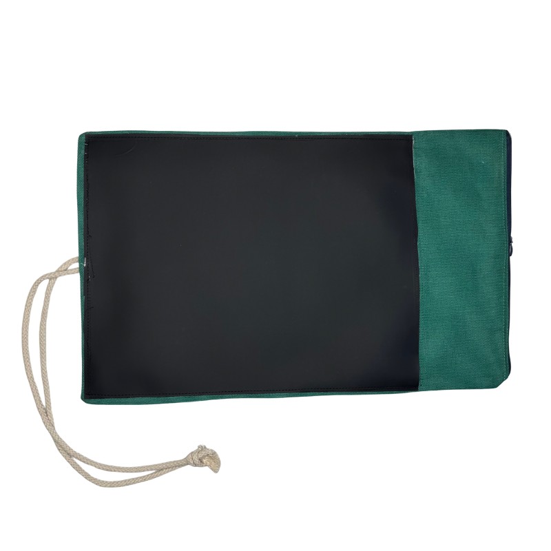 Materiali leggeri ma resistenti per garantire durabilità e trasportabilità. Controllare periodicamente le cuciture per assicurarsi che siano salde. Non utilizzare oggetti appuntiti o troppo duri per non graffiare la lavagna. Lavare a mano con detersivo delicato. Usare sempre sotto la supervisione di un adulto, specialmente se il bambino è molto piccolo. IMPORTANTE: Essendo artigianali, possono esserci lievi variazioni di colore o trama.