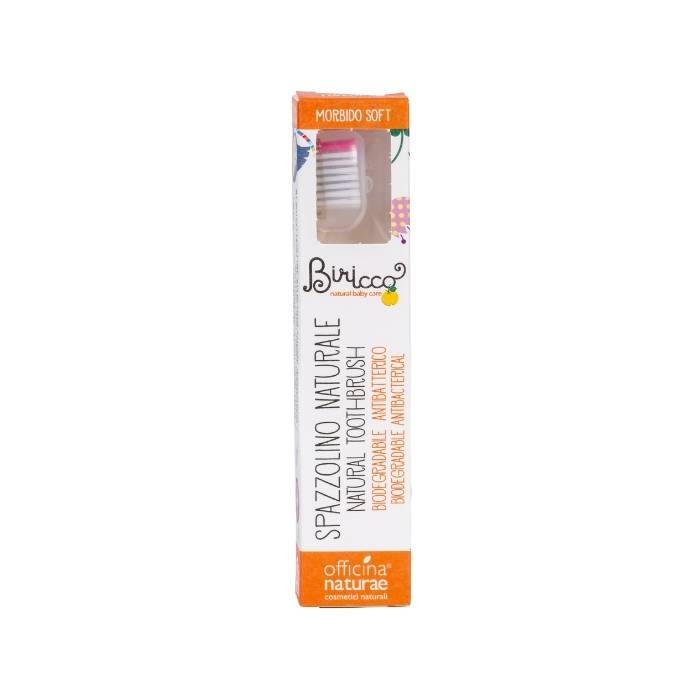 Il manico è fatto in acetato di cellulosa (bioplastica da legno), biodegradabile. Le setole esterne sono in bioplastica da olio di ricino, interne impregnate d’argento con funzione batteriostatica. Per lo smaltimento, separa le setole dal manico: il manico può andare nell’umido dopo essere ridotto in piccoli pezzi, mentre l’astuccio in cartoncino può essere riciclato nella carta. Lo spazzolino è progettato per i più piccoli, ma deve essere utilizzato sempre sotto la supervisione di un adulto. Non lasciare che il bambino corra o giochi mentre lo ha in bocca. Controlla periodicamente lo stato delle setole e del manico: se noti usura o deformazioni, sostituiscilo subito. Non mordere il manico o le setole. Adatto a bambini piccoli, ma va usato correttamente per evitare il rischio di ingestione accidentale di parti o urti nella bocca.